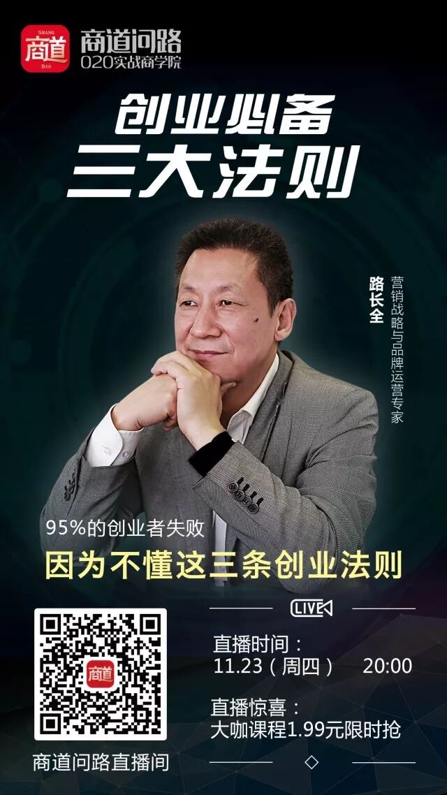 本周四(11月23日)晚上8点我将通过视频直播的形式,给大家讲一讲这些事情,让大家在以后的创业路上少走弯路。