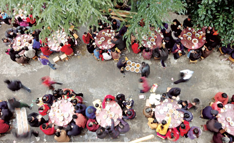 2006年春节,湖南株洲一个老板请老家全村人吃团年饭.