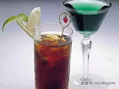 自由古巴 (Cuba Libre)此酒是由产自加勒比海区国家古巴的朗姆酒加可乐调制而成。在美国,一群人热热闹闹到了club里不点“自由古巴”,表示你有点落后。调制自由古巴的朗姆酒的口感复杂,因为由蔗糖提炼,骨子里非常热情且带点甜美,但是它又可以纯粹到有超高酒精度,所以由它调制的酒款大多浓烈。