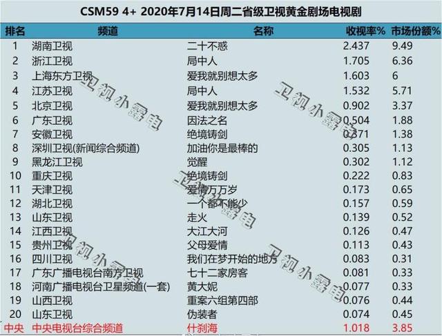 7月14日,电视剧《二十不惑》在正式开播,开局成绩让各方面皆大欢喜,收视率逆流而上,一反之前的颓势,打败《局中人》《爱我就别想太多》等同档热播剧,助芒果台杀了一个久违的回马枪,笑得合不拢嘴。