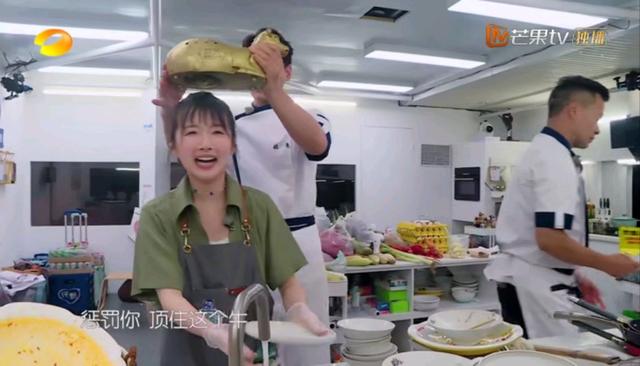 3、黄晓明带着李浩菲去接客的时候,她躲在后厨里,洗了一条抹布,有推诿偷懒的嫌疑,不过后来也有帮忙点菜和上菜。