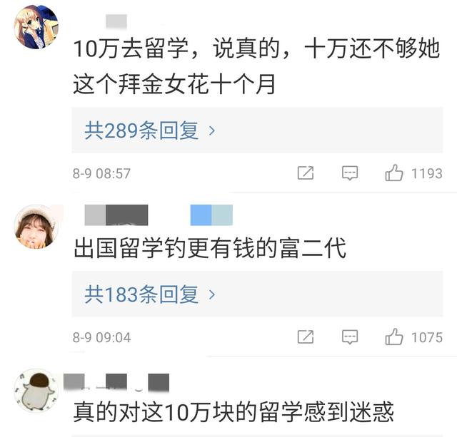 王漫妮的故事振奋人心,可是看到这里,很多网友不干了,十万元去留学,够干什么?美元都不够。