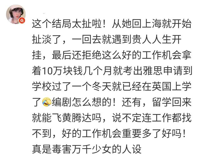 有人联系到人设和价值观,纷纷表示这是毒鸡汤,王漫妮不该放弃当店长的机会,留学回来可能工作都不好找。
