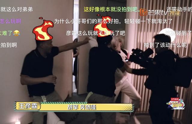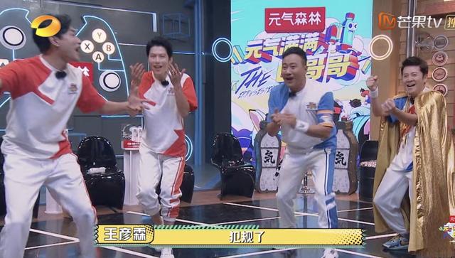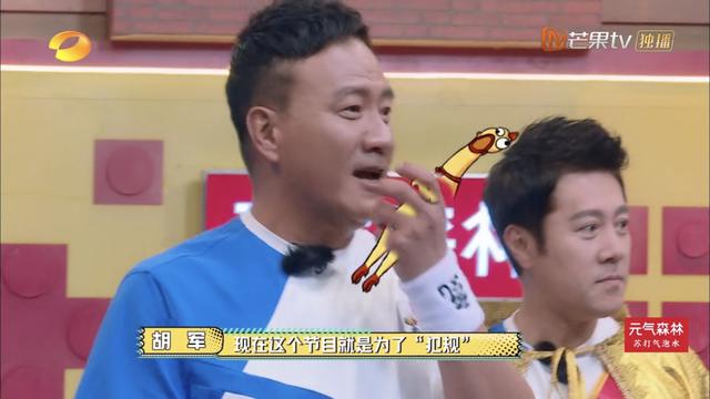 陈学冬看到此情此景假装拿起电话控诉“刚刚他们犯规了,不算”,胡军则也假装拿起电话说“现在这个节目就是为了犯规”。