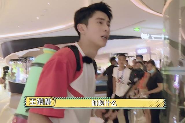 接下来王耀庆派出的统一着装的迷惑团,在商场里跑来跑去,引得弟弟们跟着跑来跑去,王鹤棣跑到上楼梯的力气都没有了,当识破一个工作人员假扮的明星后,棣棣终于忍不住发飙“不是你跑什么呀!”