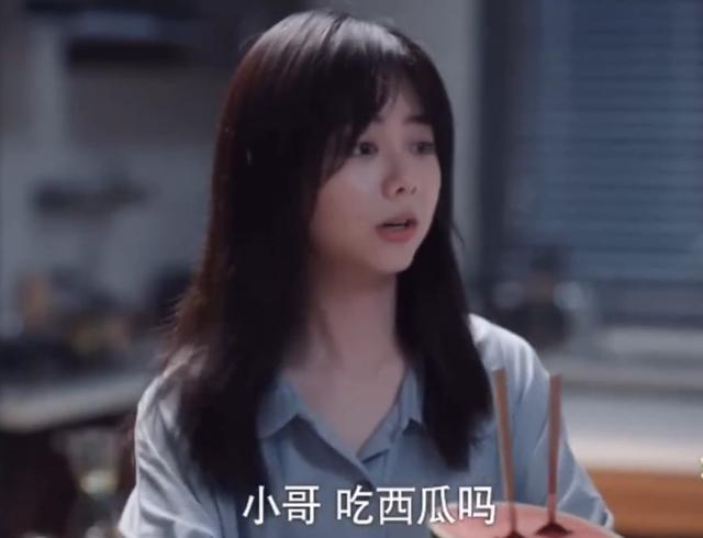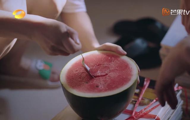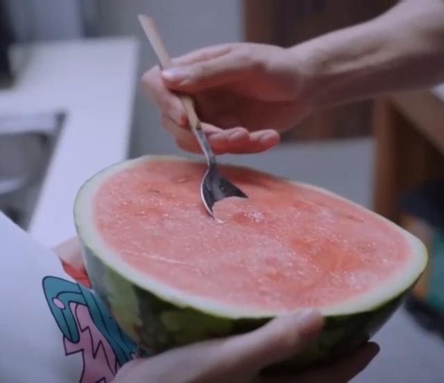 尖尖给小哥拿西瓜则直接上面放两把勺子,并不会挖芯儿给小哥。