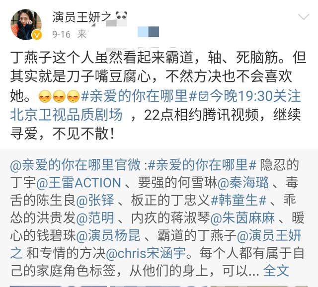 《亲爱的,你在哪里》讲述的不仅仅是找孩子的故事,更是两个家庭找回信任与亲情的过程,丁燕子固然可恨,可是还年轻,内心也有善良的一面,正如演员王妍之的评价:刀子嘴豆腐心。
