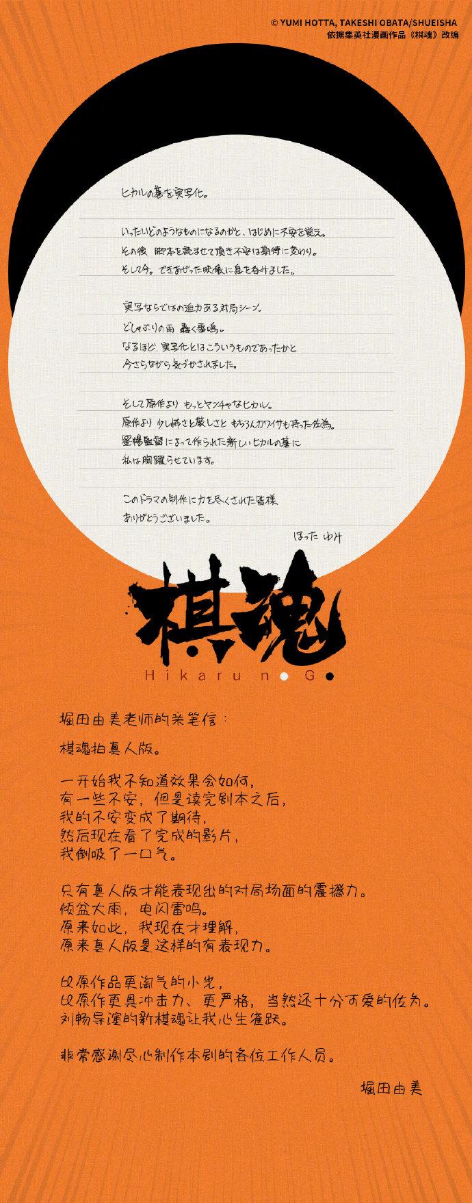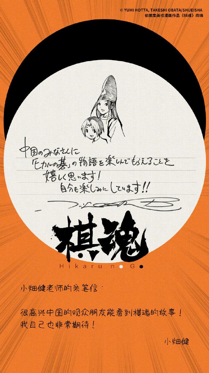 原画作者小畑健也发来亲笔手写信:“很高兴中国的观众朋友能看到棋魂的故事!我自己也非常期待!”