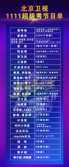 前两日,有网友在豆瓣爆料苏宁易购双十一超级秀节目单,里面竟然有365个祝福开场和难忘今宵结尾,很有国家台的范儿,可惜已经被证实是假的。不过也能看得出,粉丝对这场超级秀非常期待,苏宁易购每次官宣,都会引起粉丝广泛关注。