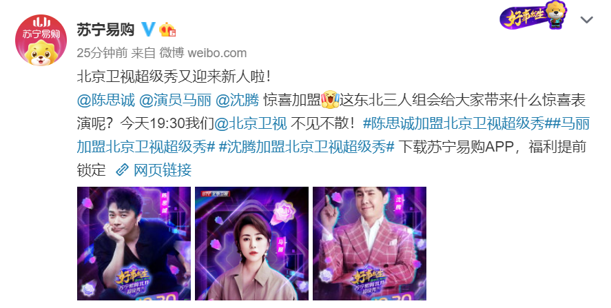 根据之前苏宁官宣加盟双十一超级秀的明星阵容,就有不少网友猜测苏宁易购是要打造一场适合全家人一起观看的狮晚。