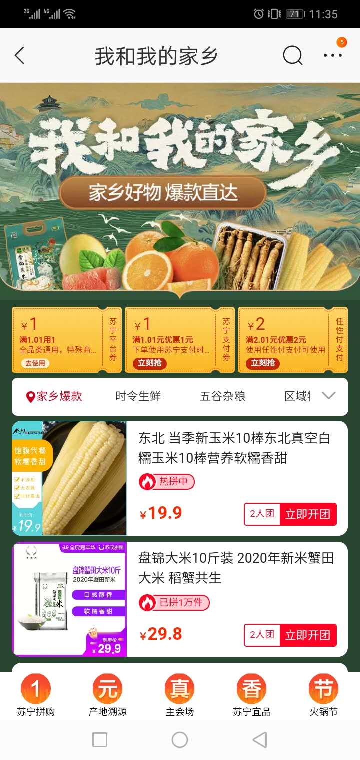 不仅有超豪华的明星阵容和劲爆福利,这个双十一,苏宁易购还专注于公益事业。目前,苏宁易购已经上线了"我和我的家乡"主题会场,帮助各种家乡好物提升销量,消费者通过搜索"家乡"就能进入。