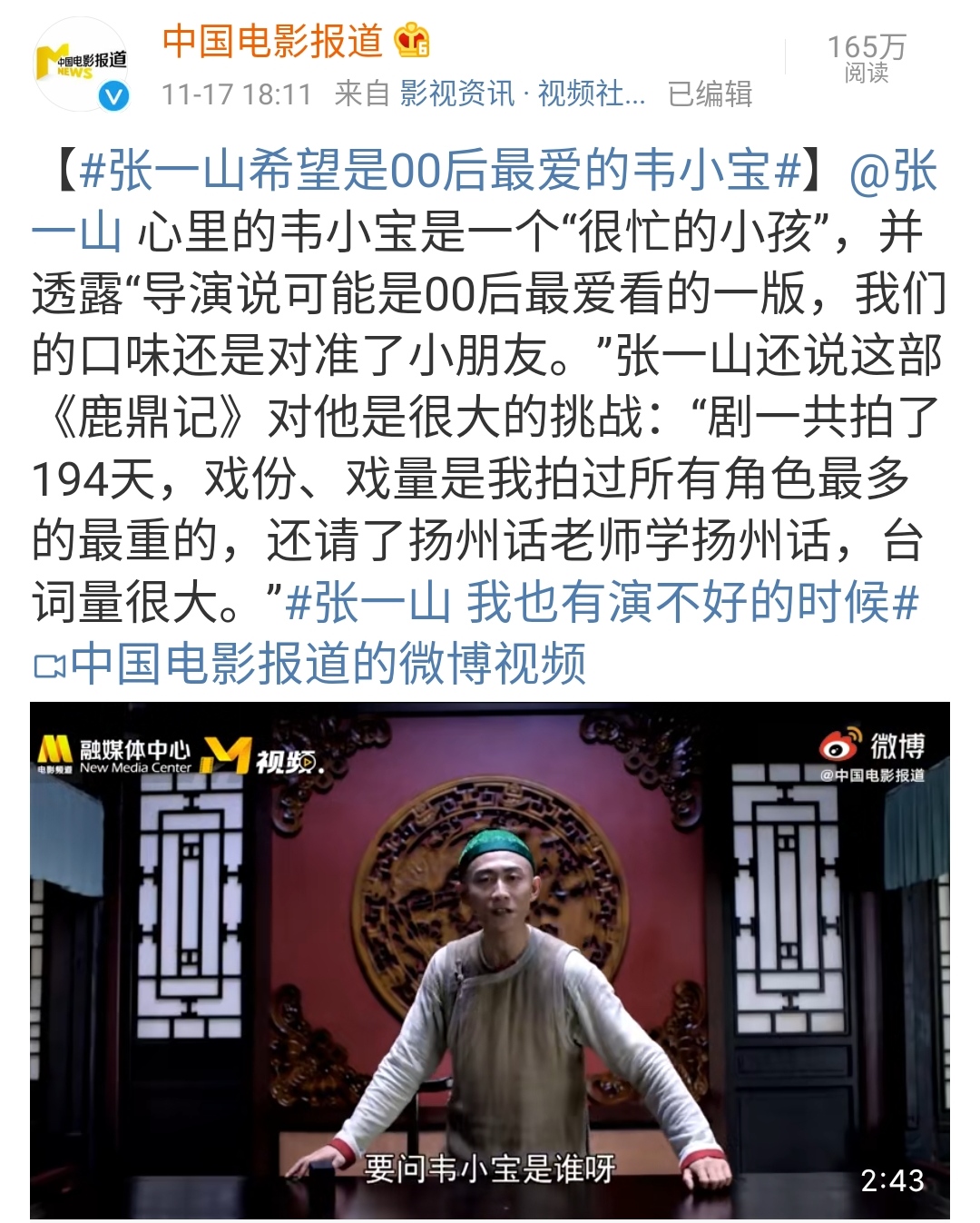 尊不尊重原著不是自己说了算,张一山却真的为了演好韦小宝,特意去学了扬州话,而不是像被批评的那样只耍京片子。