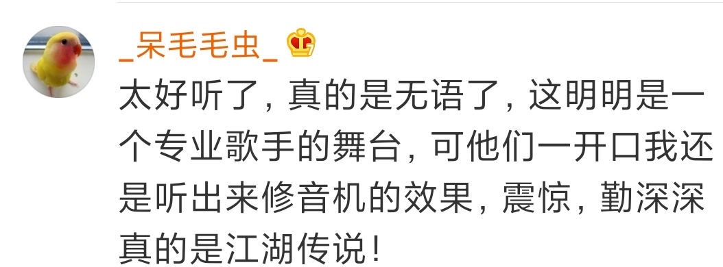 勤深深唱完之后,很多乐迷都纷纷表示很遗憾,原因据之前的路透,勤深深本场唱了两首歌,一个就是这个换名版的《富士山下》,另一首则是日文经典,据说是好听程度更胜一筹,可是因为相同的原因,就只能剪掉不播了。