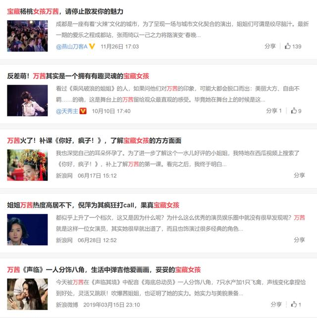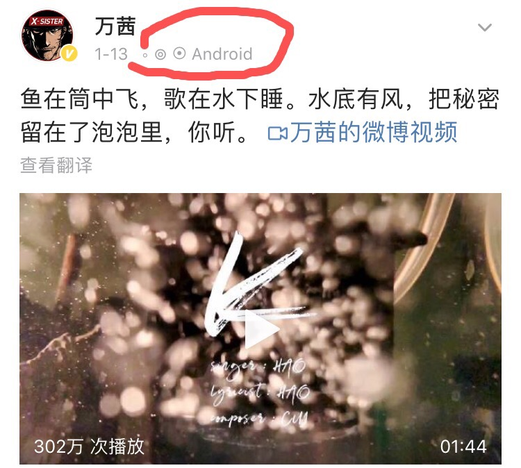 万茜配的文案也是文艺范十足,"鱼在筒中飞,歌在水下睡。水底有风,把秘密留在了泡泡里,你听"。天呐,这还是那个实力演绎"六亲不认的步伐"的万茜吗,更有意思的是,万茜为了配合这条博文,把微博小尾巴设置成几个泡泡性质,真·讲究人,哈哈。