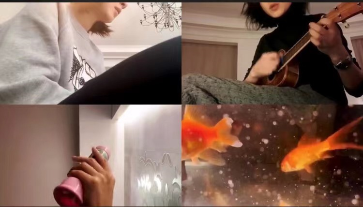 万茜微博更博一条自弹自唱的歌曲,乍一看视频封面,文艺、唯美是我第一反应能想到的关键词,点进去一看,可真真是有点东西,不仅歌好听,更是创意十足。视频封面是以鱼缸气泡为视觉元素,空灵梦幻感溢出屏幕,视频开始是万茜拿着尤克里里自弹自唱,随着镜头的切换,弹唱视频中增加了自己的和声、鱼缸水流动的声音、手摇万花筒的声音等元素,再配上一条在水中游来游去的小鱼,治愈感十足。