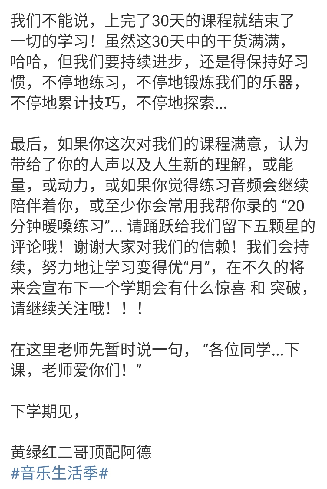 确实,和现在北上广地区动辄单节过千,一期上万的特长班相比,三十节只收一千多元的唱歌课简直就是太实惠了,还有王力宏亲自收改作业和指导,更是超值,难怪很多网友都给出了五星评价,认为通过这个课程受益匪浅。