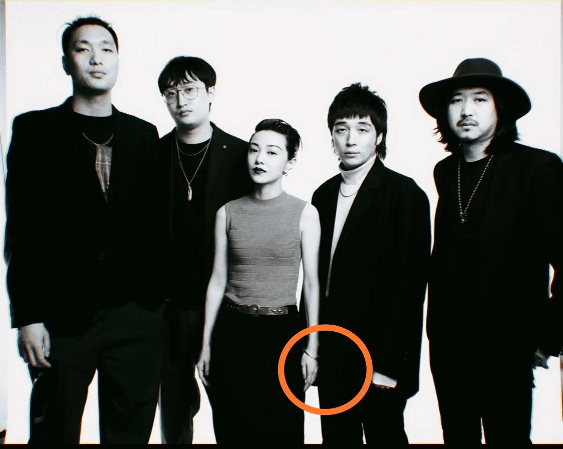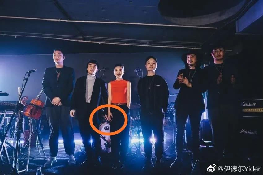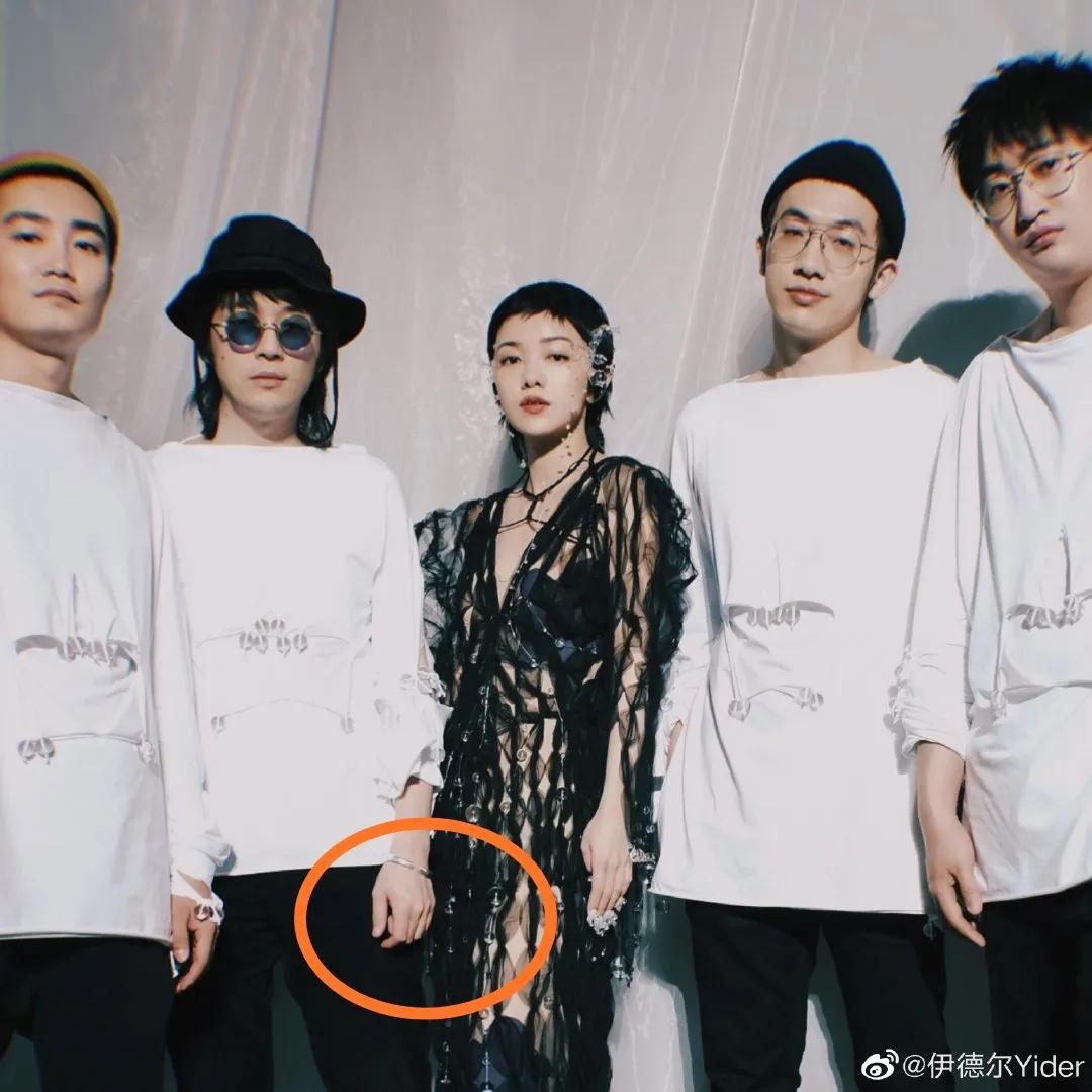可是,在这么多照片里,很容易发现有三张照片与众不同,这三张都是乐队合照,里面都有郭采洁和伊德尔,而且两人都是在借位牵手。