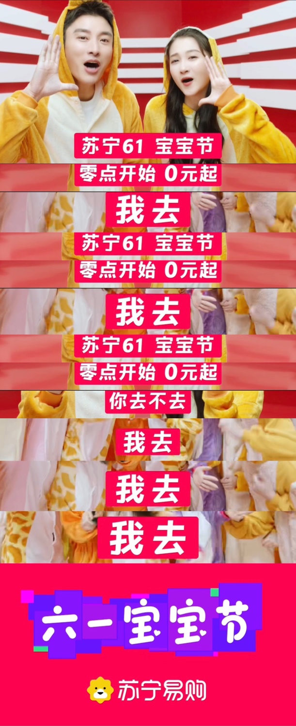 此外,为了让大宝宝们停下奋斗的脚步,也能好好过一个儿童节,苏宁易购六一宝宝节还推出了“苏宁61宝宝节,零点开始,0元起”福利。我对这个活动印象特别深刻,因为今天一大早就在电梯里看到了贾乃亮、关晓彤的这个魔性广告。