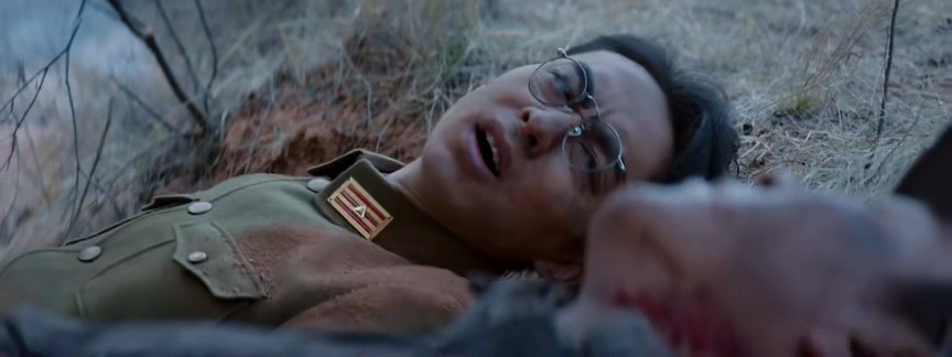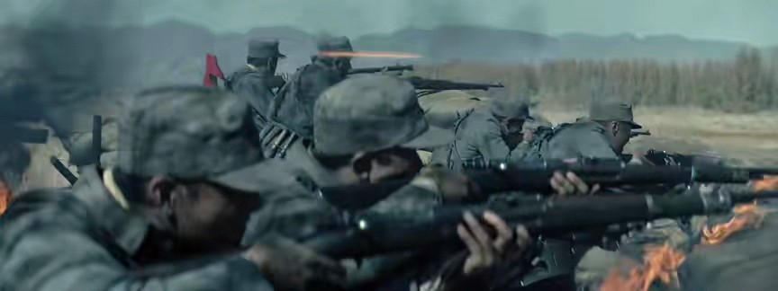 在看电影的时候,大家可能还没顾上思索这项任务的重要性,就看到了比绝大多数大银幕电影的战斗场面,从一开场的阵地战,趴在战壕里打退冲锋的敌人,到挂上刺刀跳出去刀刀见血,枪火交织,血肉横飞,无论军械的质感,爆炸的密度和力度,以及双方的人数,调度的专业性,还有演员的表演水准,处处都是战争大片的质感,如果不告诉片名,给几个镜头盲猜,估计大多数人会以为是好莱坞的经典。