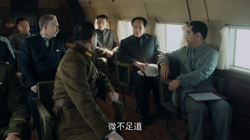 比如说一开场,重庆和谈这一幕,许多文本和影视都表现过,但是这一次多了不一样的信息,毛主席第一次乘飞机,恐高但没有避讳,反而直视飞机窗外,对外国人说“个人的得失和国家与民族的命运相比,天上地下,微不足道”,而之,蒋一边取消亲自迎接的计划,还急赤白脸的训斥服务生,说辣子是乡野村夫的食物。一边是胸怀天下,敢为人先,一边是小肚鸡肠,崇洋媚外,稍加对比,双方的人格、气魄和格局,高下立判。由此可见,编剧是真的抓到了历史关键而有趣的细节,通过细节强化了人物的刻画,人物又把事件变得饱满、立体,而不是平铺直叙。