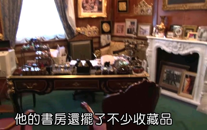 可是走进去之后,扑面而来的是金碧辉煌的闪光,太晃眼了,书房里摆满了世界各地的古董,中式的工艺品也很多。