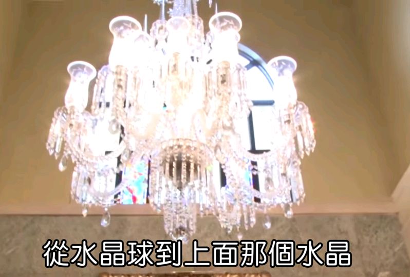 客厅里的水晶灯有两三米高,王羽介绍说二十年前花五百万买的,可能指的是台币,也不便宜。
