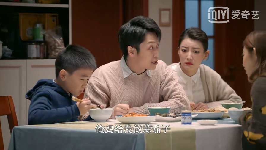 近似的场面在剧中比比皆是,就像在最新的两集剧情里面,姐夫被男孩叫爸爸,飞天横祸的同时,他一边求生欲满满,跪求老婆大人别误会,一边热心肠MAX,继续给孩子做爱心茄子,外表的囧、糗、可笑,与内心的善意形成对比,把角色变得超值可爱。