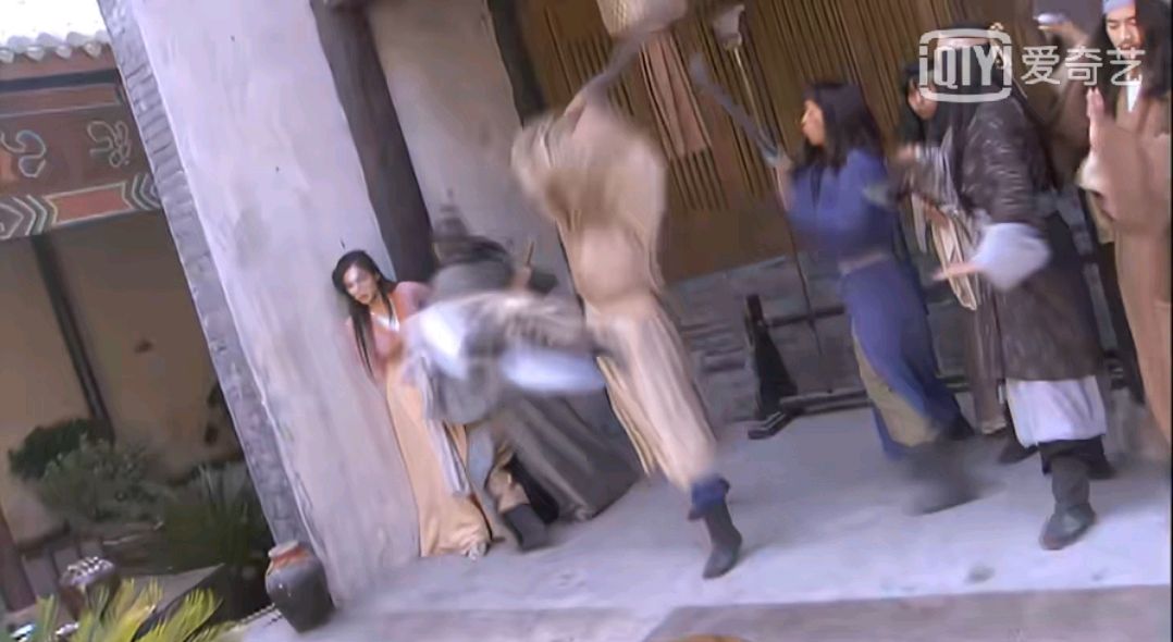 这一个重口情节,胡军版不仅拍了,还加了他情急之下徒手抓圆盾,户口崩裂的画面,为了阿朱,激发出全部潜能,画面炸裂。
