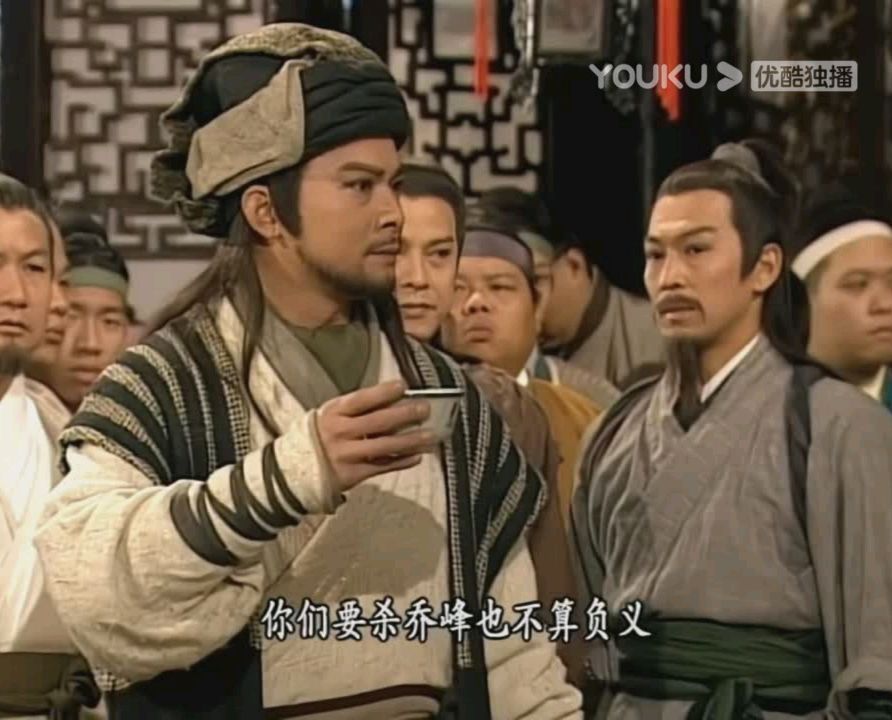 这一段有诡异有悬念,在一触即发的大战前先来热身,展示了乔峰的绝顶内力,坦荡刚猛的人格,是原著里面的名场面,只有胡军版真正演了出来。