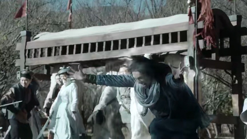 随着剧情不断展开,终于来到了大家期待许久的聚贤庄大战,熟悉金庸原著的都知道,这一战太经典!乔峰为了救活阿朱,不顾群雄齐聚在此商议诛杀自己,两个人驾着马车来拜庄了,乔峰在这里一个打一百个,喝断交酒,战群雄,饶玄寂,打得荡气回肠,名场面不断,虽万千人吾往矣,义薄云天,热血沸腾,堪称是武侠版的战狼。