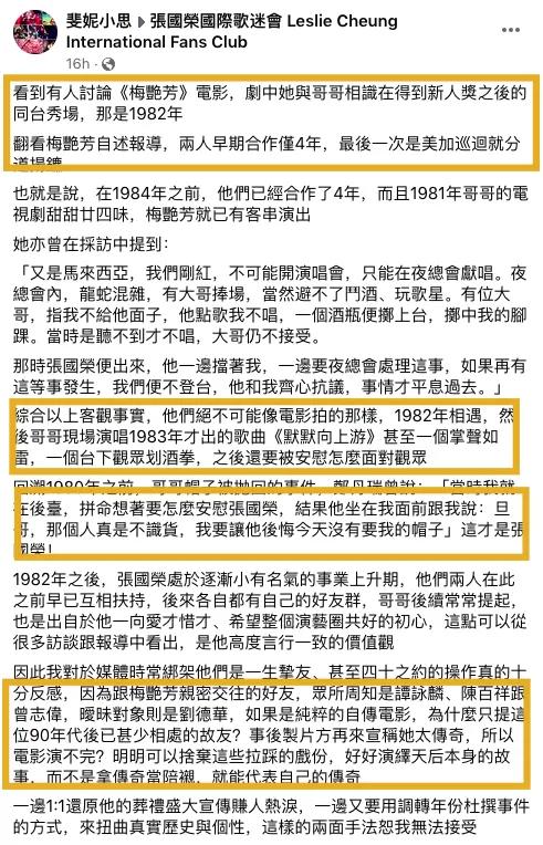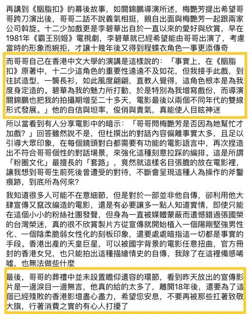 这位名为斐妳小思的张国荣歌迷会成员,发文调理清晰,共指出多个剧情失实之处。