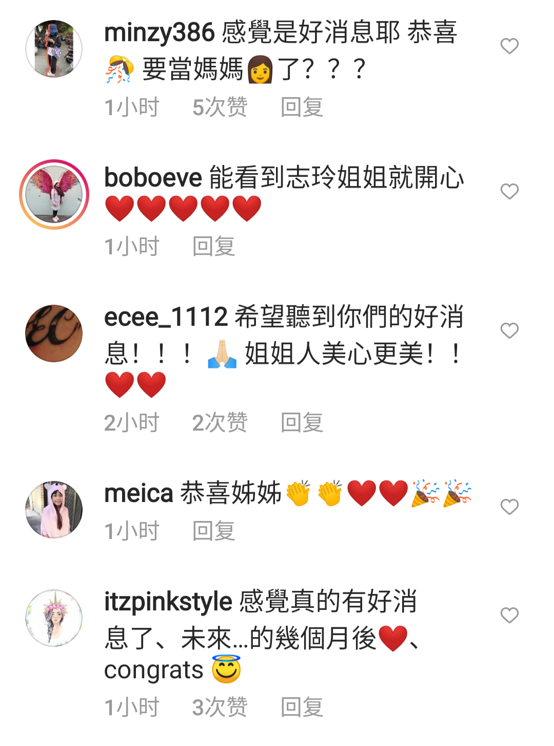 图片中甜甜的笑容加上文字的暗示,再度让网友浮想联翩,莫非真的有了宝宝?
