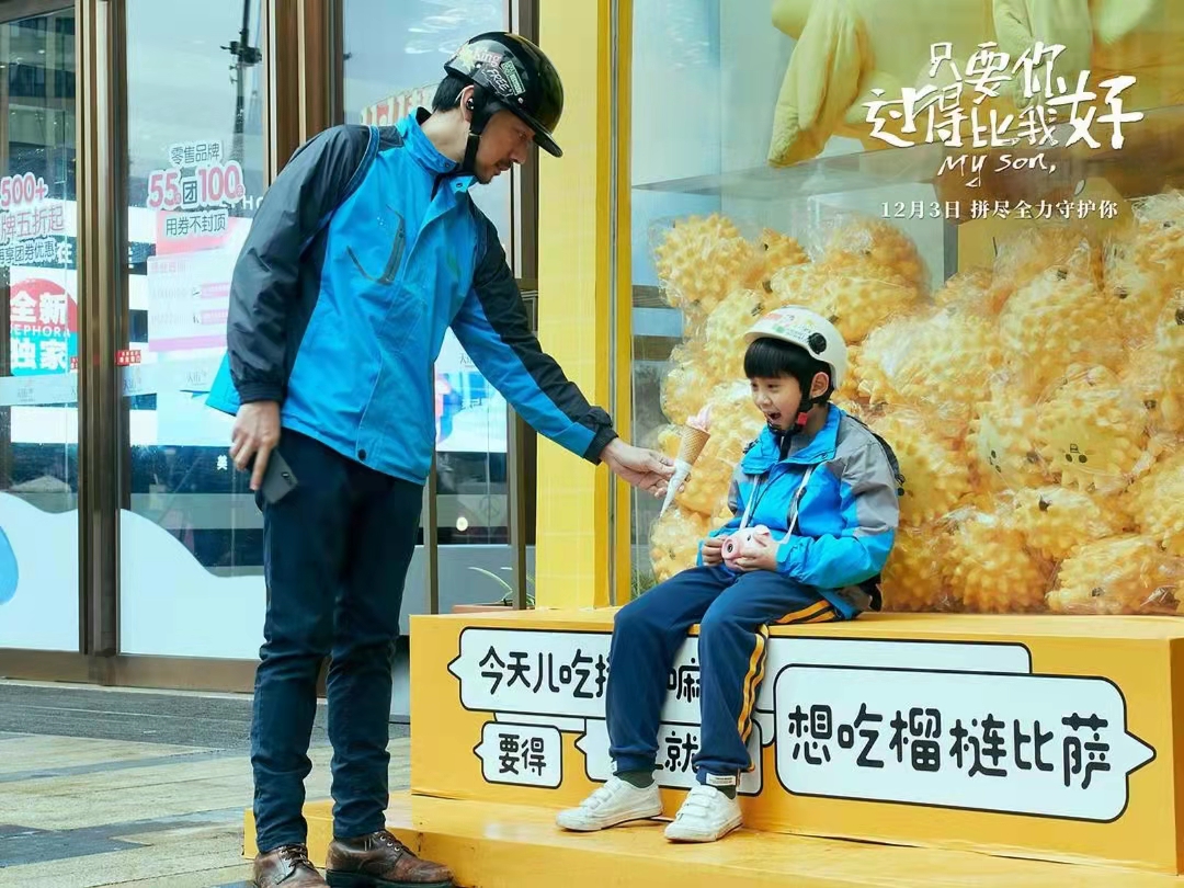 经过无数这样的情节积淀,老曹的形象变得饱满立体。不否认在很多人的眼中,他是一个失败者,还能活半年的病人,卑微的外卖员,像蚂蚁一样辛勤,没有多大本事,不能让儿子住进大房子,坐上好车穿上漂亮的衣服,甚至没有宽裕的零花钱,连个冰激凌都舍不得吃,但是这份卑微的父爱却能量惊人!他带给儿子的精神财富,坚强、质朴、乐观的人生态度,可能是那些拥有豪车洋房的爸爸们无法给予的。