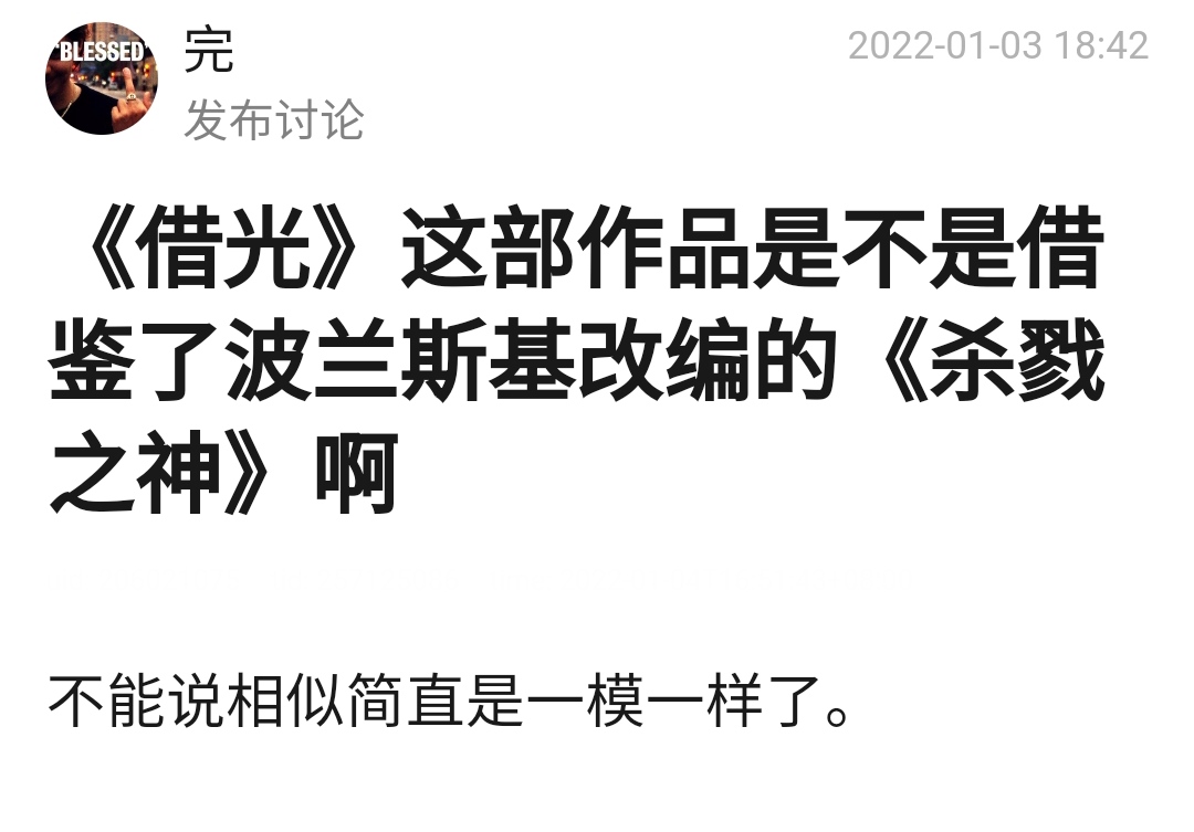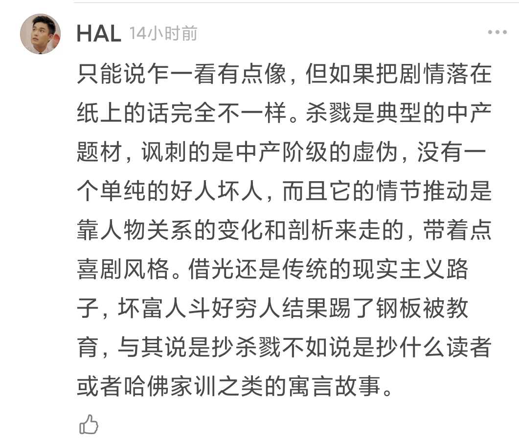 也有网友表示只是巧合。“只能说乍一看有点像,把剧情落在纸上完全不一样。”