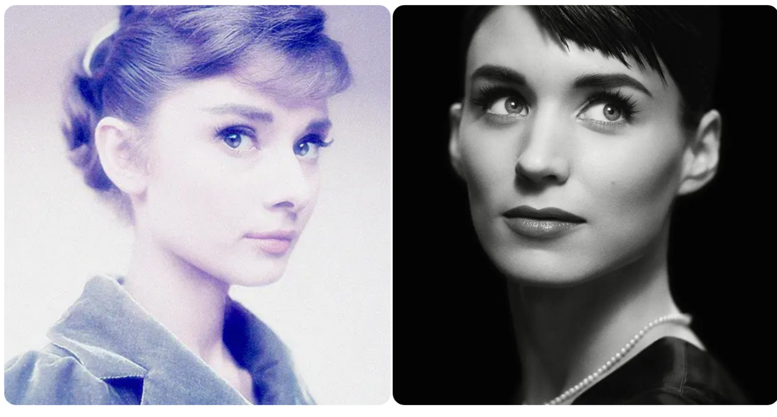 显而易见,鲁妮·玛拉不仅是时尚气质和表演风格最接近奥黛丽赫本的演员,在颜值上两个人也有惊人的相似度。