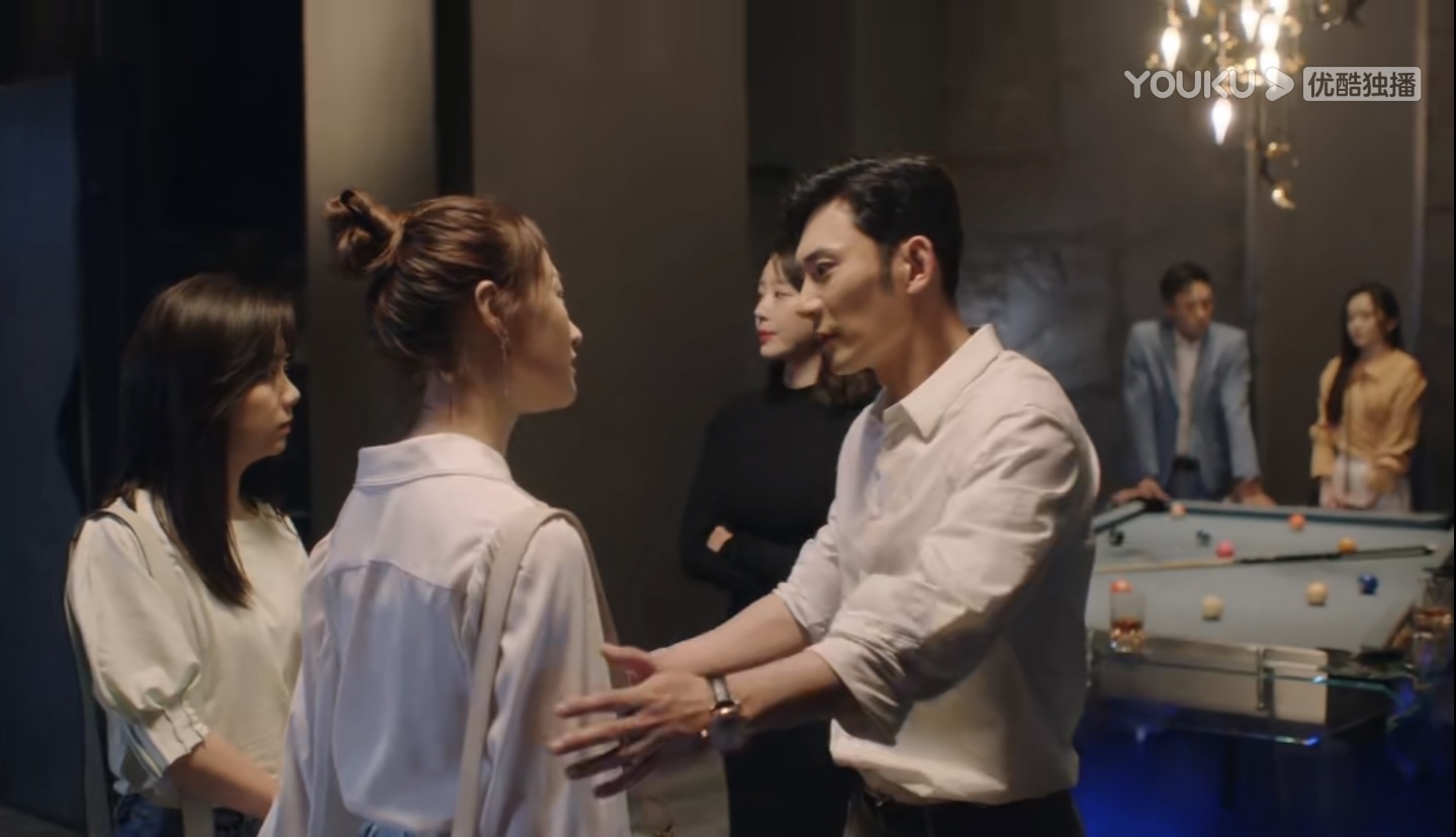 当尤琪发现老何和别的女生关系暧昧,情绪激动和老何吵了起来,老何给柠檬打电话让她来接尤琪。柠檬赶到现场,屋子里一共6个人,柠檬、尤琪、老何、穿黑衣服的女生、一位男同事还有一个黄衣服女生。