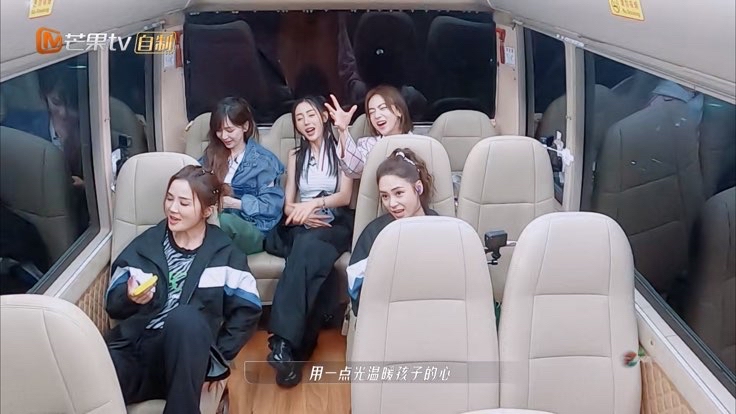 回去休息的大巴车上,车上的灯出故障一闪一闪的,姐姐们立刻联想到了《星星点灯》,马上开起了小型演唱会。