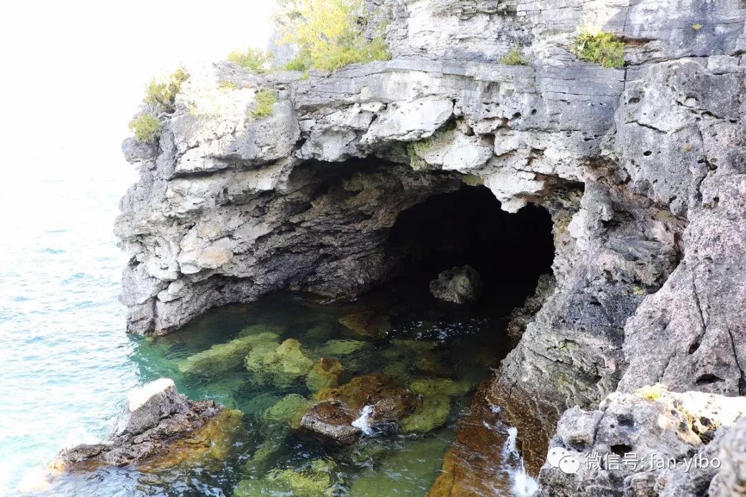 公园的亮点,是湖边的岩洞。沿着森林里的步道来到乔治亚湾水岸,沙滩,宽阔的湖水,巨石嶙峋,感觉就是来到了大海边。岩石遍布的湖岸,风化的岩石棱角分明,形态万千。几处岩洞洞中有水,水中有洞,非常奇特。