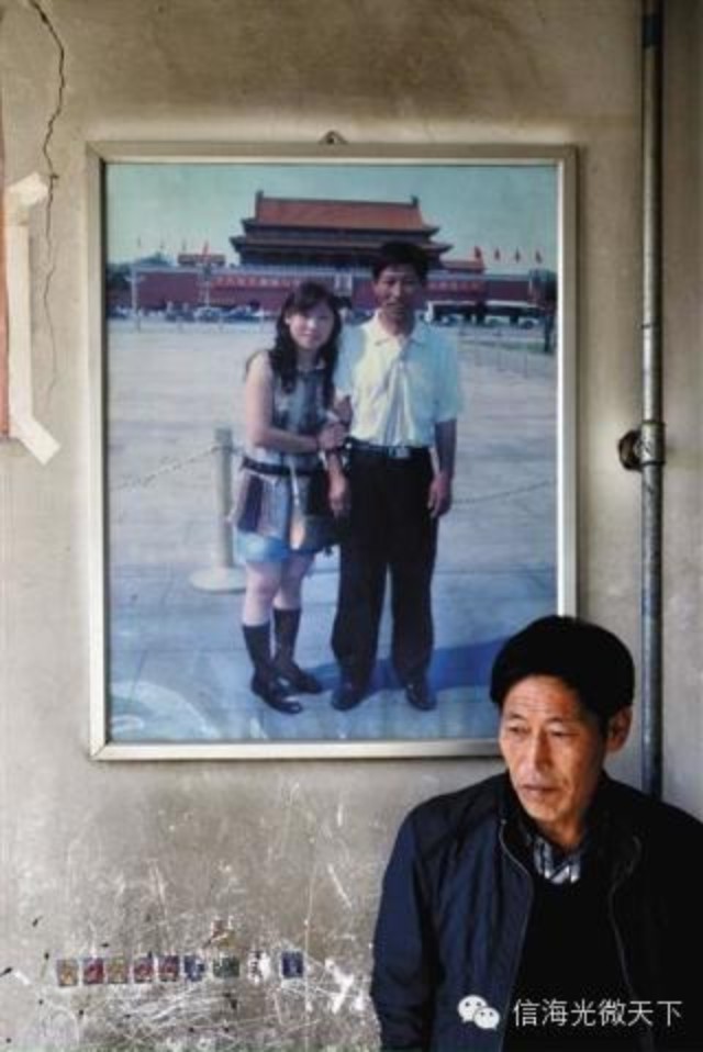 潘小梅一年最多回老家两三次,潘国清的卧室里,挂着一张和女儿在天安门的合照:那是多年前的夏天,她穿着蓝色裙子,搭配灰蓝色的马甲,黑色靴子延伸到小腿,靴子上有细碎、小小的亮片。左边胳膊挎着父亲,笑起来眼睛眯成了一条缝。“她从小就爱美,上小学时,兜里要是有个十块八块,就会攥着钱到小镇的照相馆里拍照。”