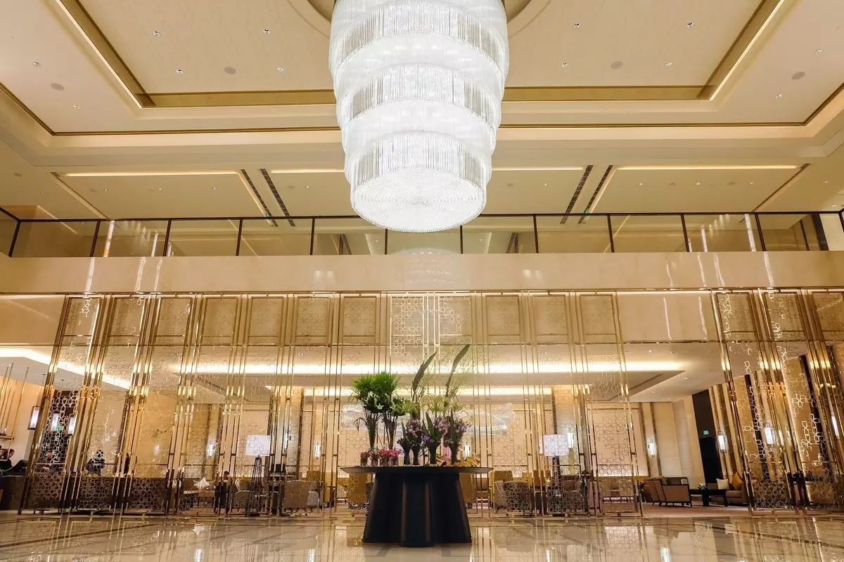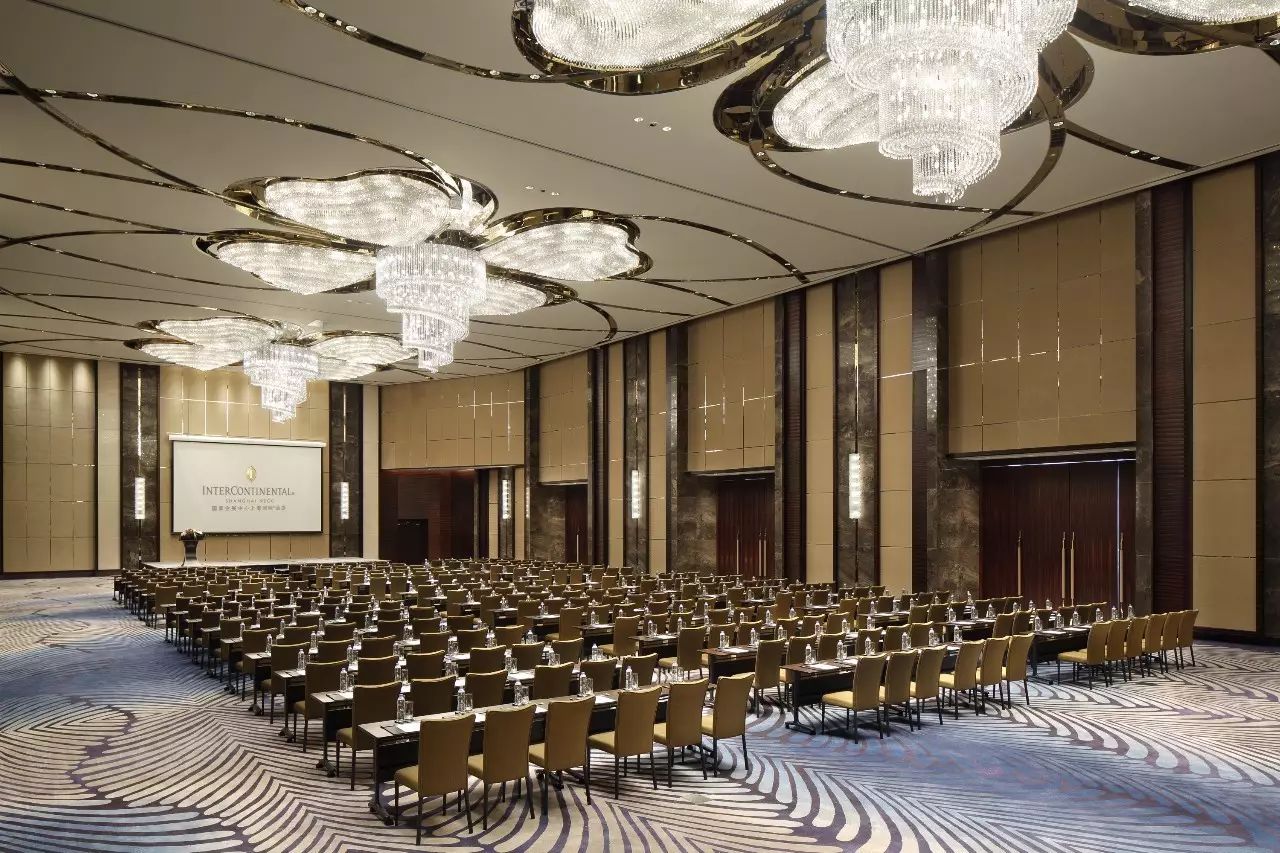 以金色为主色调的大宴会厅层高9米,配有一间独立新娘房,装饰着以“四叶草”为原型的超大水晶吊灯,象征着幸运与幸福。经验丰富的婚典经理会献上专业建议,并倾力筹备所有环节,帮助宾客举办难以忘怀的洲际婚典。