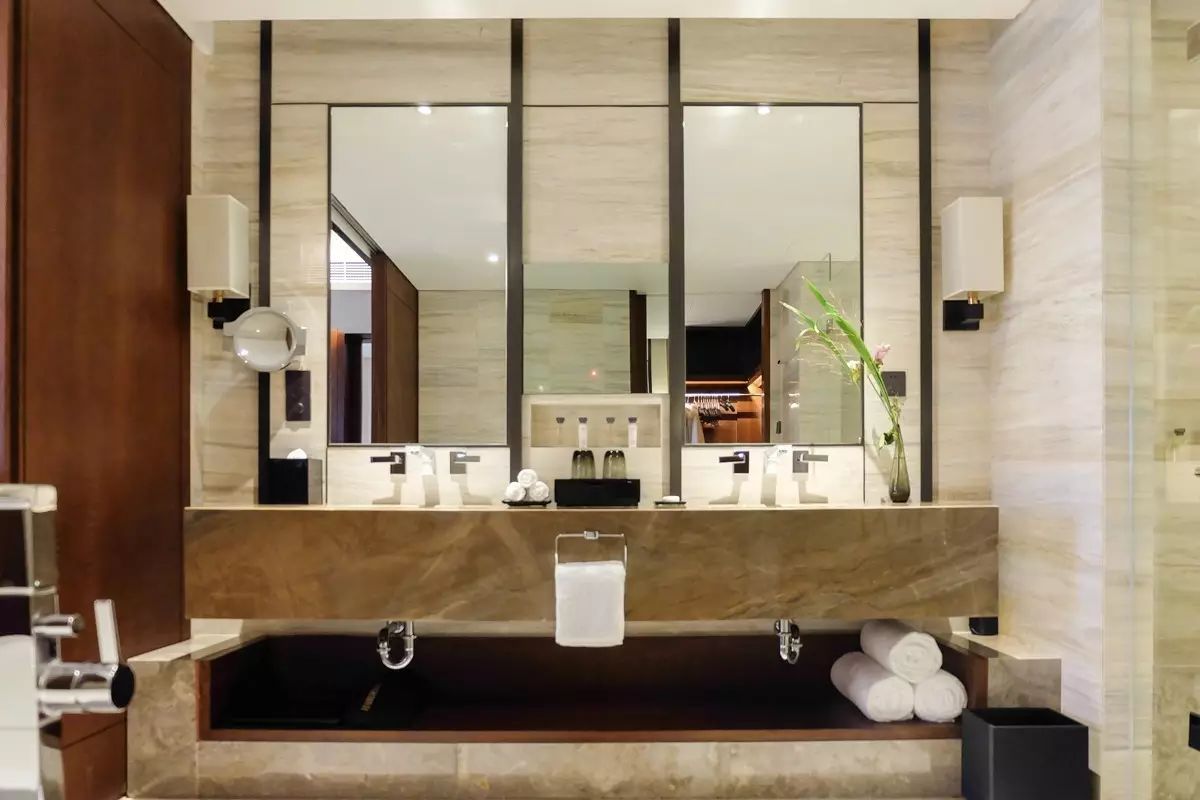 全方位数字化娱乐系统、热带雨林式沐浴设施、宽敞的办公书桌和符合人体工程学的座椅更为商旅之行营造尊贵不凡的居停氛围。