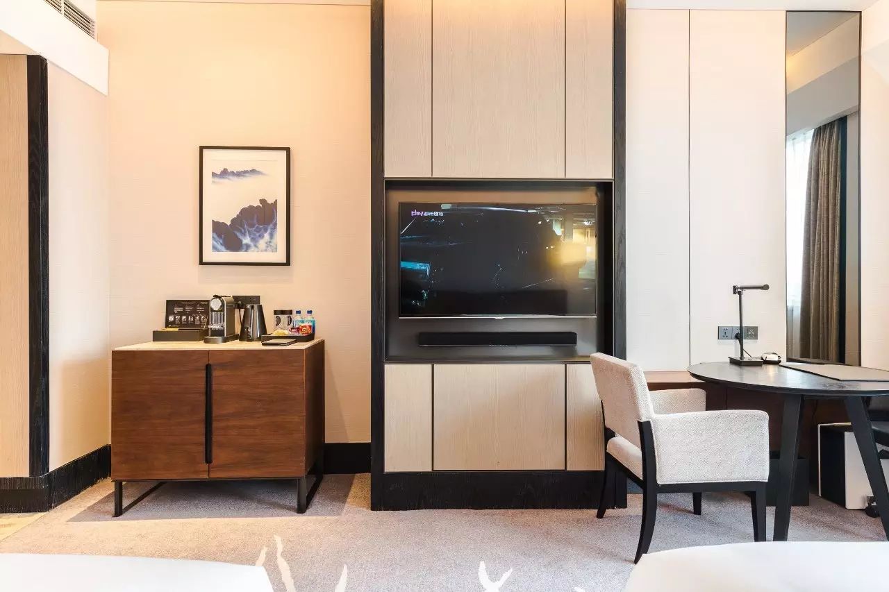 每间客房均配备齐全的现代设施,如48寸液晶电视、高速无线网络、Bose蓝牙音箱,以及来自美国顶级香氛品牌艾格瑞(Agraria)的特色洗浴产品。