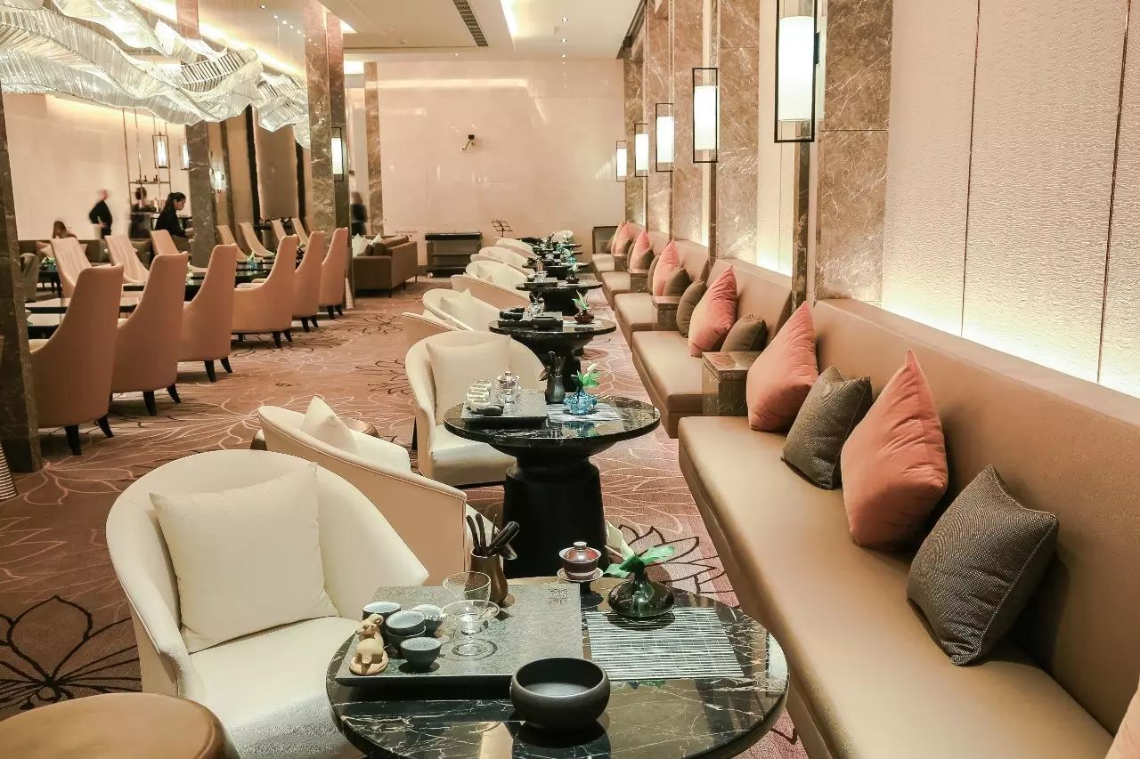 雅致怡人的大堂酒廊坐落在大堂一隅,巧妙的运用“四叶草”艺术屏风与大堂分隔。宾客可以随时品享多种茶品、下午茶套餐、及晚间饮品。此外,酒廊入口处还设有特色茶饮展示区,可让宾客近距离领略中国茶文化的博大精深,丰富旅途时光。