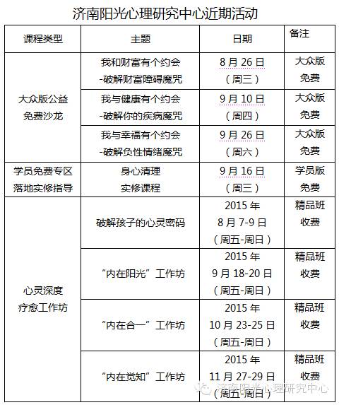 济南阳光心理研究中心近期活动