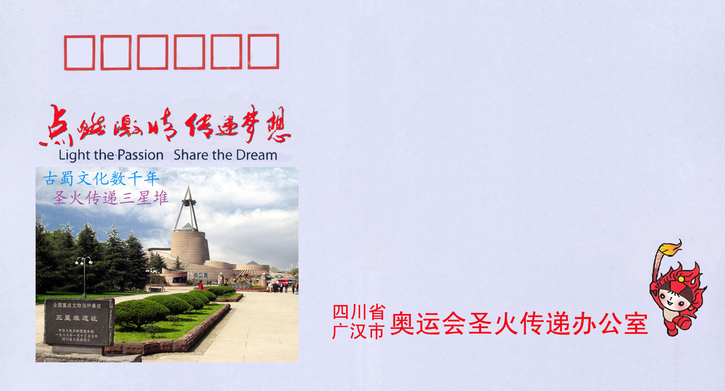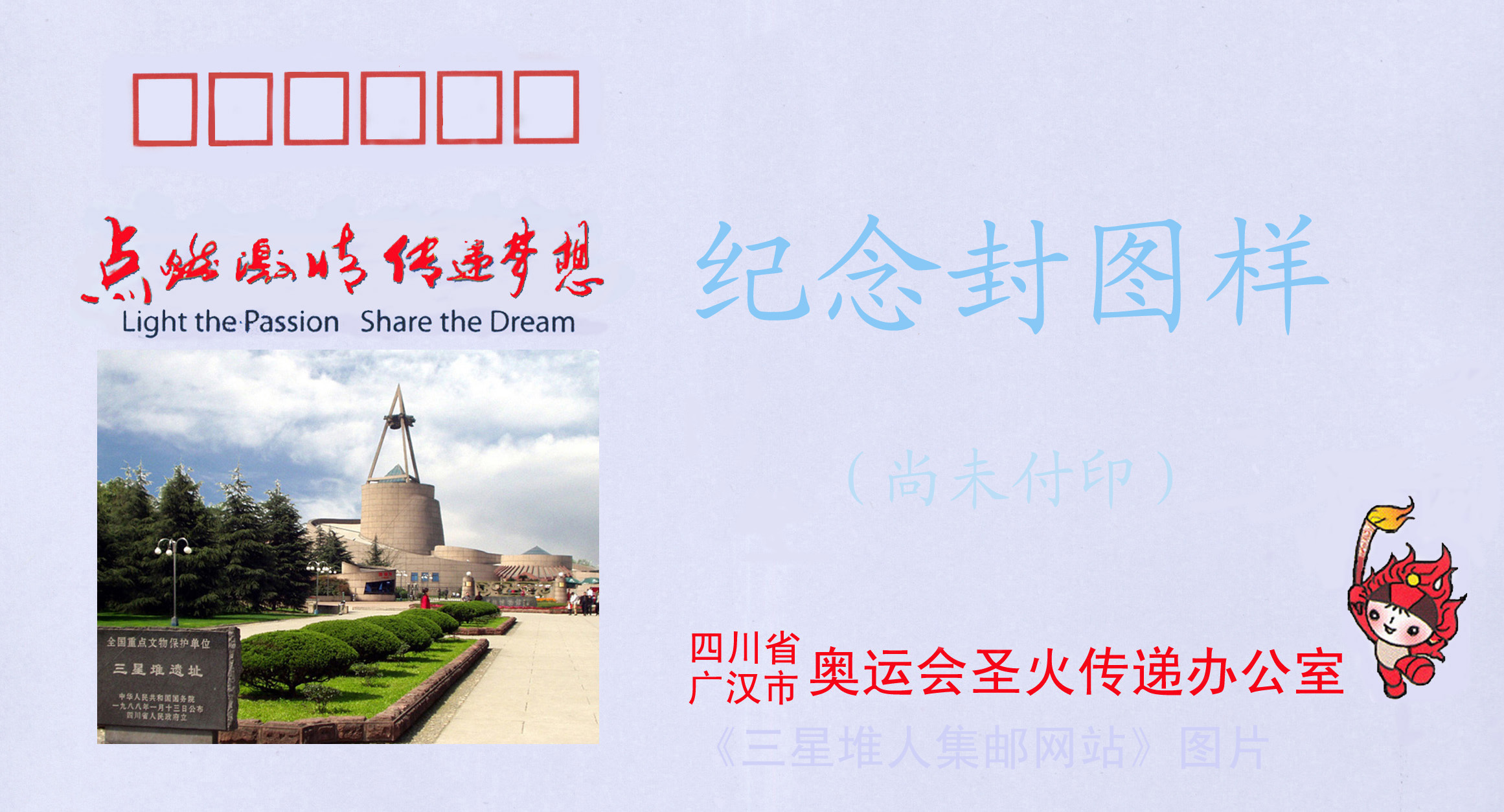广汉火炬传递纪念封正在设计之中,尚未付印,请以正式封图为准。