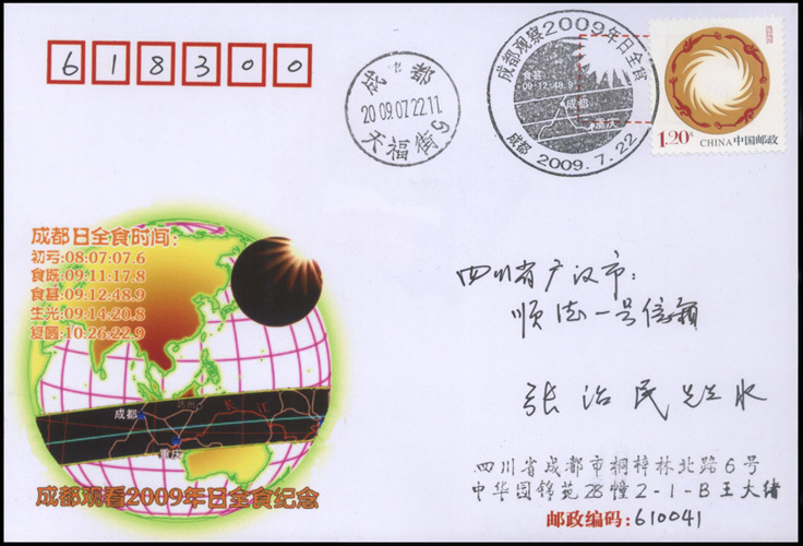 人文日全食日偏食成都邮政局纪念戳集邮三星堆人 |