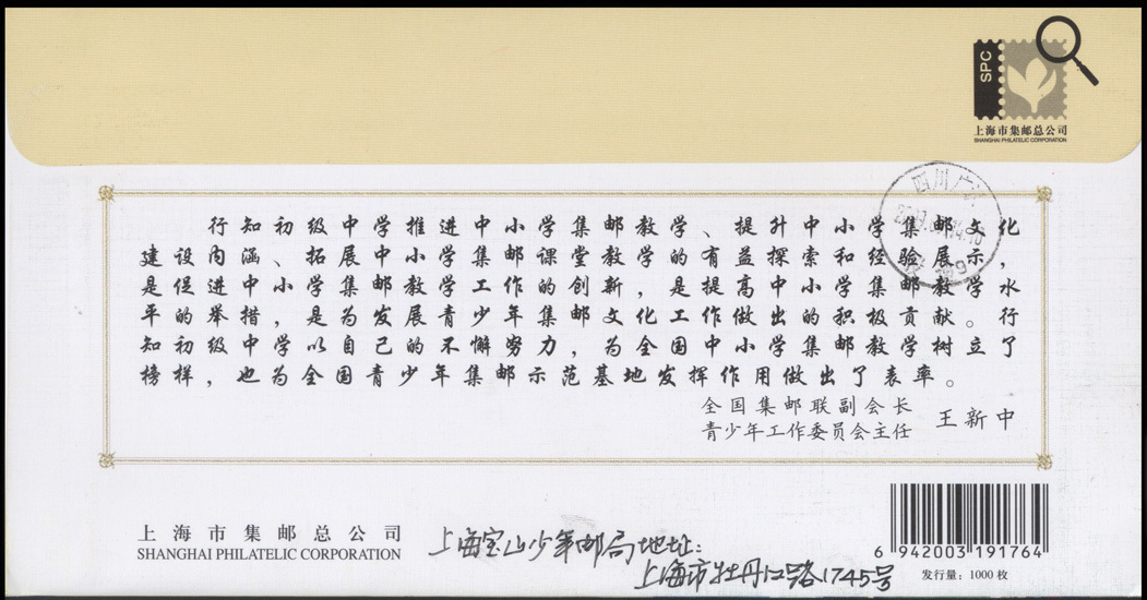 纪念封明信片汪昌明上海宝山少年邮局成立集邮三星堆人 |