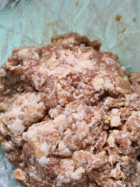 6.猪肉馅放入料酒,十三香姜末,盐,耗油搅拌均匀。