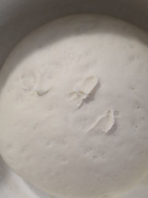 1.牛奶放入盆中加入面粉发酵粉和成面团醒1小时左右