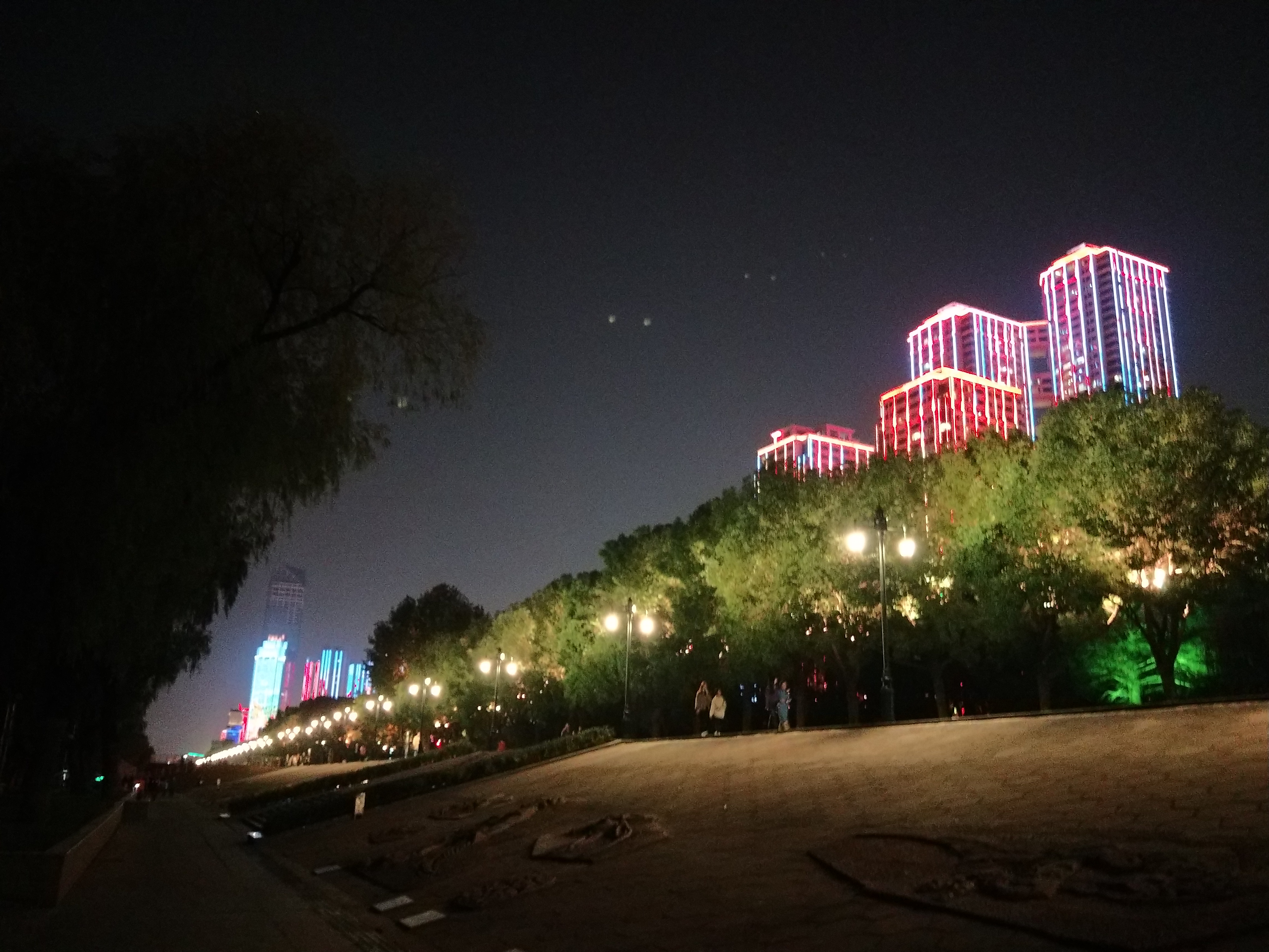 扭头观望汉口楼群,因鲜有灯火点缀,观之索然乏味。